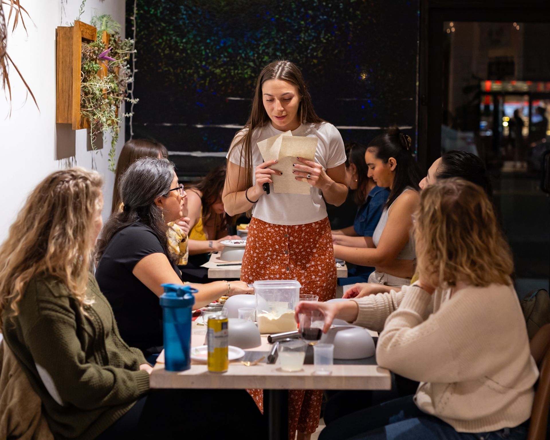 This is a hands on pasta class where you’ll learn all the basics of making your own fresh pasta from scratch, from kneading your ball of dough, to hand forming your pasta using a variety of pasta tools - and enjoy some wine along the way!